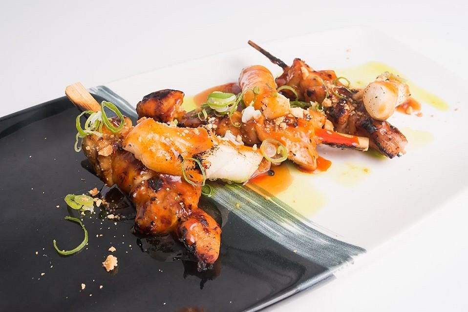 For another beautiful starter dish, the Yakitori is a crowd favourite. Beautifully charred grilled chicken served with chilli teriyaki, rice cakes and peanuts. Even the rice cakes are slightly fried and charred to enhance its flavour profile.