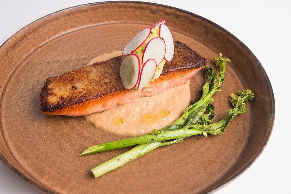 Next up, we have the Ocean Trout. A beautifully piece of trout pan seared leaving the skin light and crispy. This dish is served with yuzu edamame and Sichuan onion puree which adds a little bit of natural sweetness when eaten together.