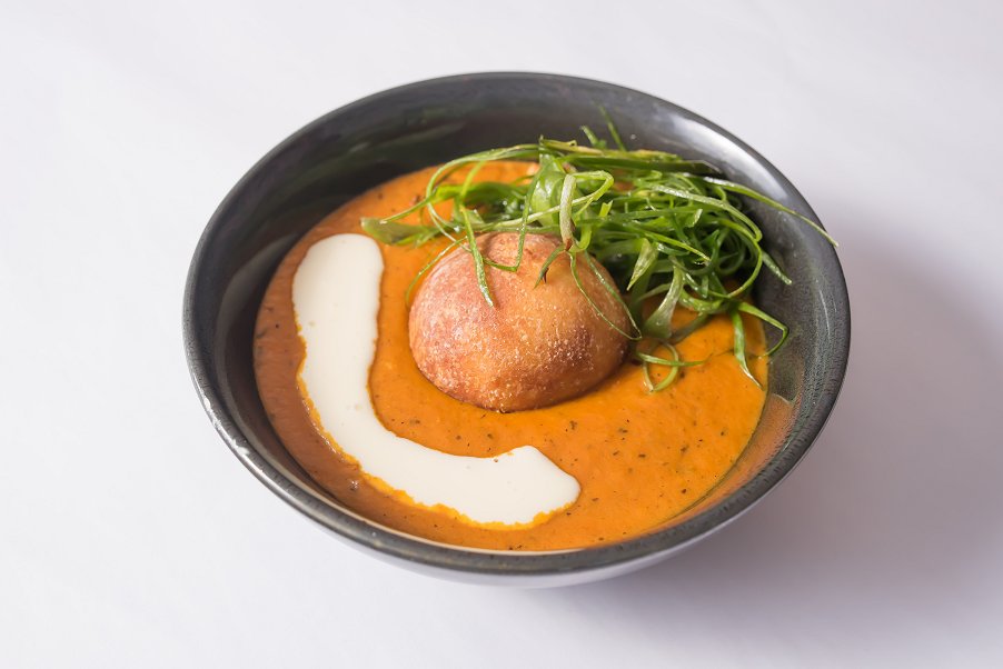 Next was the Potato Paneer and Spinach Dumpling. When we heard dumpling we thought, traditional Asian dumpling but we were blown away when we saw that what came out more closely resembled a deep fried ice cream ball! It was filled with beautiful creamy potato and spinach, crumbed and deep fried then half soaked in their ‘Goan’ inspired curry. This curry is savoury and creamy with a cheesy flavour throughout. Absolute bliss.
