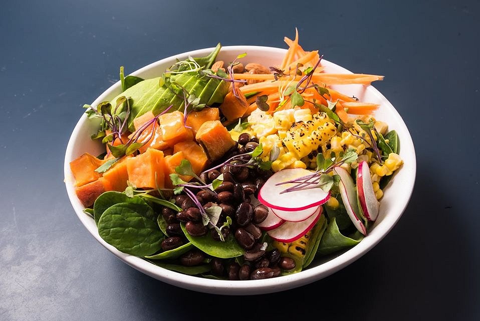 Our last dish was the Rainbow Veggie Bowl. As you can see in the photo, they named this dish as colourful as a rainbow. Fresh baby spinach at the bottom then topped with charred corn, generous amounts of avocado, julienne carrot, radish, diced maple roast sweet potato, black bean and lemon ginger turmeric dressings. And to give the extra crunch they also put almonds in it. It’s definitely a feel good type of dish.