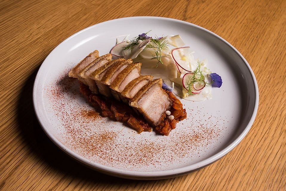 Crispy Skin Pork Belly and Kimchi – Oh, don’t we just love a good crackling! Comes with stir fried Kimchi underneath and radish, cucumber and fennel salad.