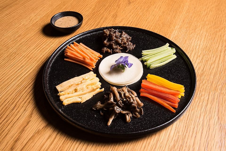 DIY Wraps – Mini pancake wraps with six delicate fillings such as beef, mushroom, egg, cucumber, carrot, Capsicum accompanied with sesame dipping sauce.