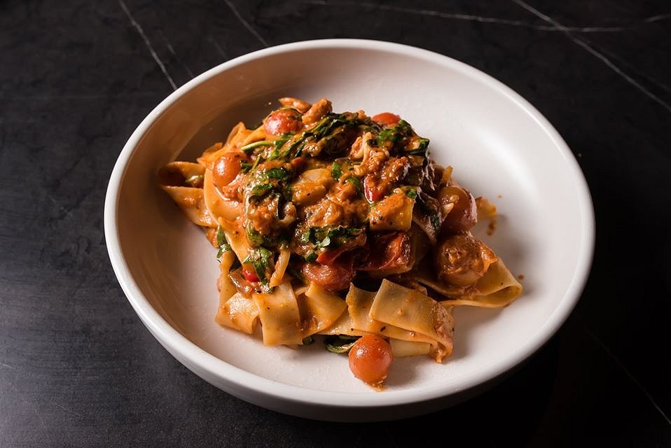 This pasta is everything a pasta should be. Rich tomato sauce with chunks of tender crab, tossed with spinach and a chilli kick. Perfect for something to warm up with, we kept going back in for more.