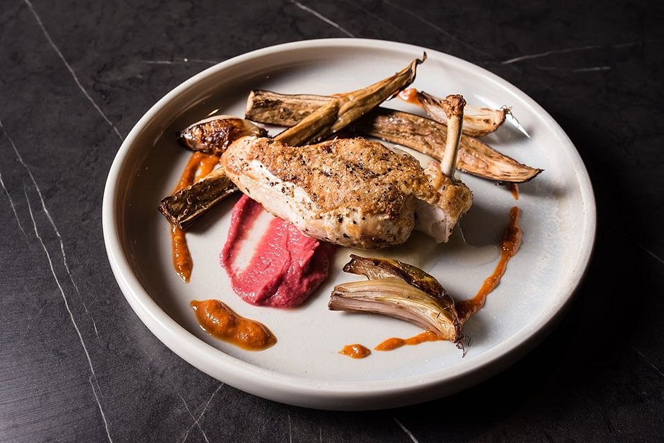 Such tender chicken topped with a crispy coating of garlic and herbs, mixed with an assortment of onion puree, smoked eggplant, harissa, beetroot hummus and roasted shallot. The presentation of this plate of food was phenomenal, and we loved the many tastes presented in this dish.