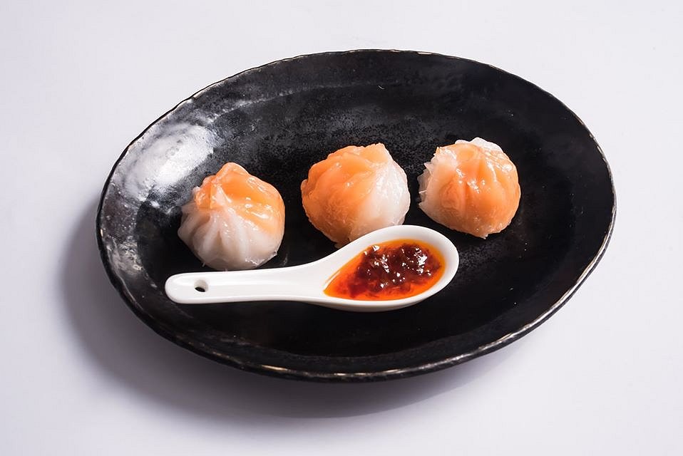 Deluxe Lobster and Prawn Dumplings with House-made Chilli Oil and Pork Dumpling with Black Vinegar and Chilli Oil
