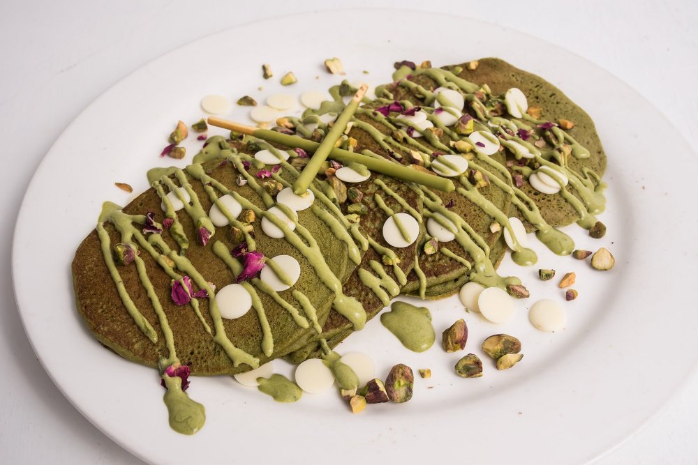 If you’re looking for a dish that isn’t overly sweet, the matcha stack is the one for you. The dish is served with four creamy matcha pancakes with a bite of bitterness, matcha sauce, pistachios and balanced out with sweet white chocolate chips. Ideal if you’re a matcha lover or looking for something a little bit different.