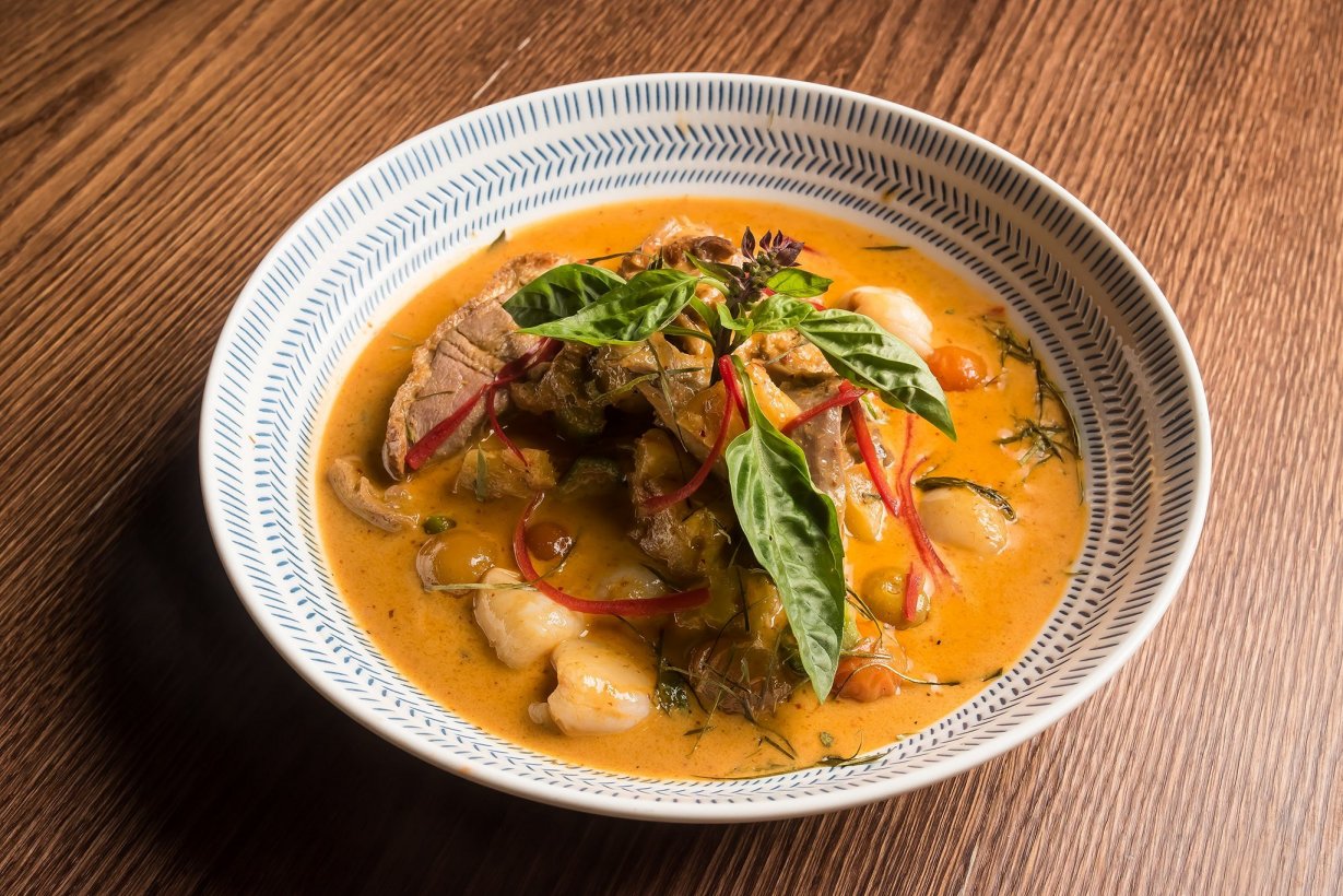 A mixture of spice, sugar and a bright orange curry sauce. The lycée and pineapple is what makes this curry so different to the rest. The sweet addition adds a fragrant element to the sauce, which pairs perfectly with the spicy chilli and gamey duck.