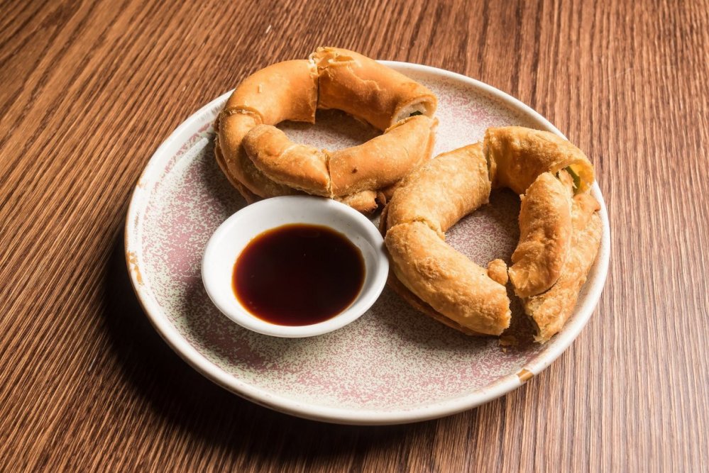 Beijing Shallot Pancakes – deep fried and served with Kikkoman soy sauce.
