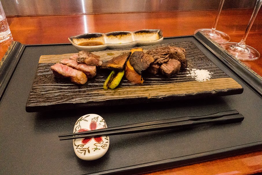 To starts things off was Sashimi made from the Blue Fin Tuna that was just freshly filleted served with wasabi and soy sauce. Sashimi is always served a simply as possible to allow you to fully appreciate the soft tuna that immediately melts in your mouth. This Sashimi is a step above in just how natural and smooth it is. The Sashimi is served with a Dowie Doole C Blanc, a crisp white that zesty flavour pairs well with the Sashimi. Dowie Doole is a close partner of Samurai Teppanyaki and also supplied a red to pair with the Steaks.
