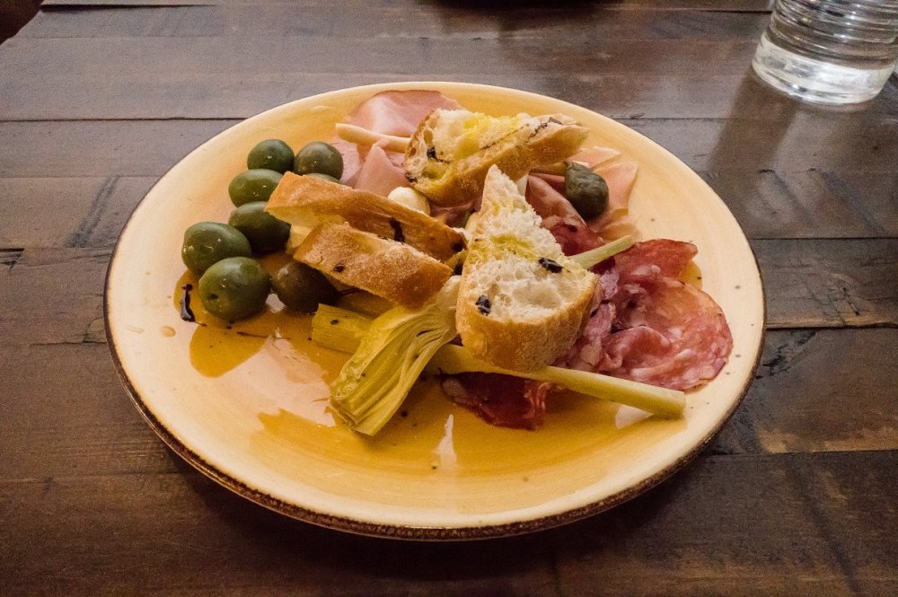 To start with, we were spoilt to a shared plate of Antipasto containing salami, parma di prosciutto, Sicilian green olives, bambino bocconcini, marinated artichokes, and ciabatta slices. This was accompanied with their Robola, which holds quite a strong citrus base such as lime and grapefruit. Growing on a limestone, free draining soil, this type of wine is rather delicate with thin skin so must also be handled elegantly. We were told they are only made in Greece.