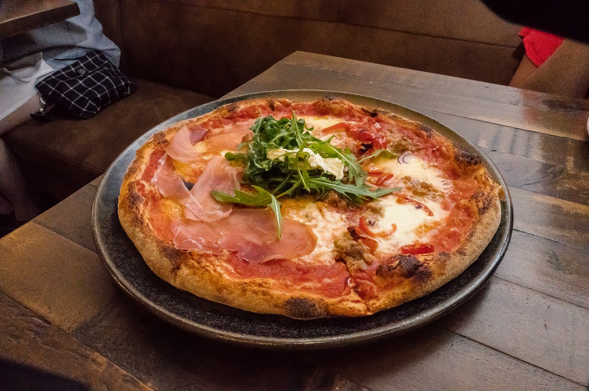 Secondi, the Pizza. Two flavours were presented on our table, both featuring the San Marzano tomato paste with fior di latte. These pizzas are inspired by the ones from Sicily, Italia. One half came with Parma di Prosciutto, Burrata, Grana and Rocket and the first bite impression was Mmmm! So good with a crispy crust. The other half came with Pork and Fennel Sausage, Chilli, Onion, Capsicum and Nduja. We love the added fresh chilli and not just some chilli flakes. It definitely spiced things up. Paired with a delicious grenache based, Mazi Rose, which is extracted in Mclaren Vale from a 60 year old vine. It’s a terrific quality fruit with no additive.