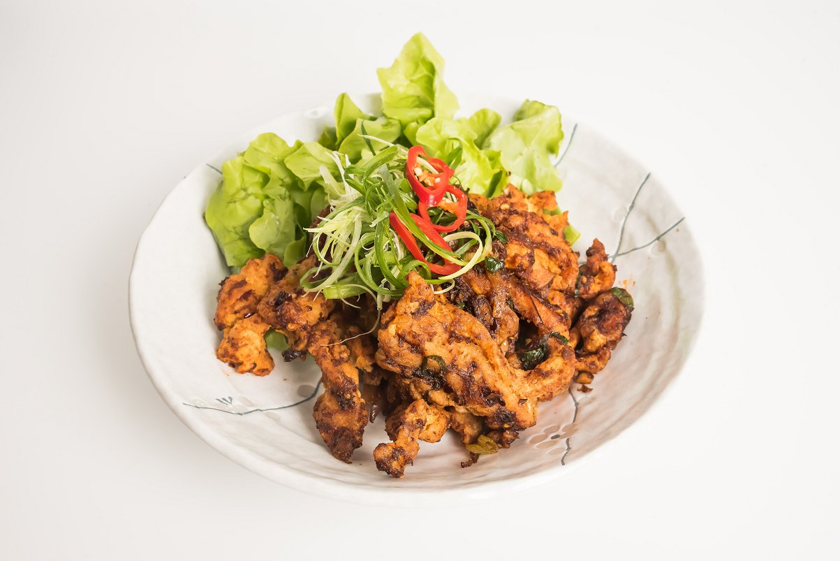 The Wok-fried Salt and Pepper Squid with Nuoc Cham is perfectly cooked in a light salt and pepper batter. The Nuoc Cham, a type of Vietnamese dipping sauce is light and zesty, with flavours of sweet chilli.