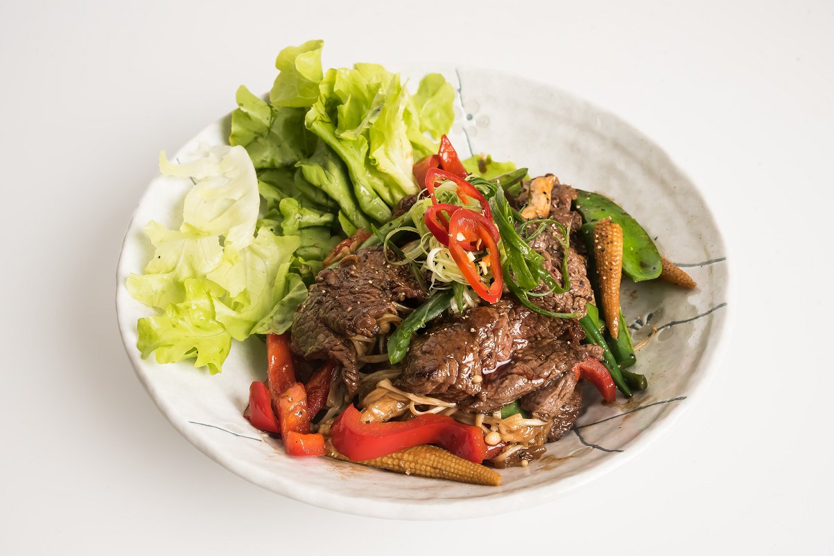 The Barramundi Fillet with Mixed Sautéed Vegetables is lightly battered sliced pieces of barramundi. A dressing of shallot and chive coat the barramundi fillets and a bed of sautéed capsicum, baby corn and snow peas. The barramundi is full of flavour and the light batter allows it to soak up the fresh flavours of the dressing.