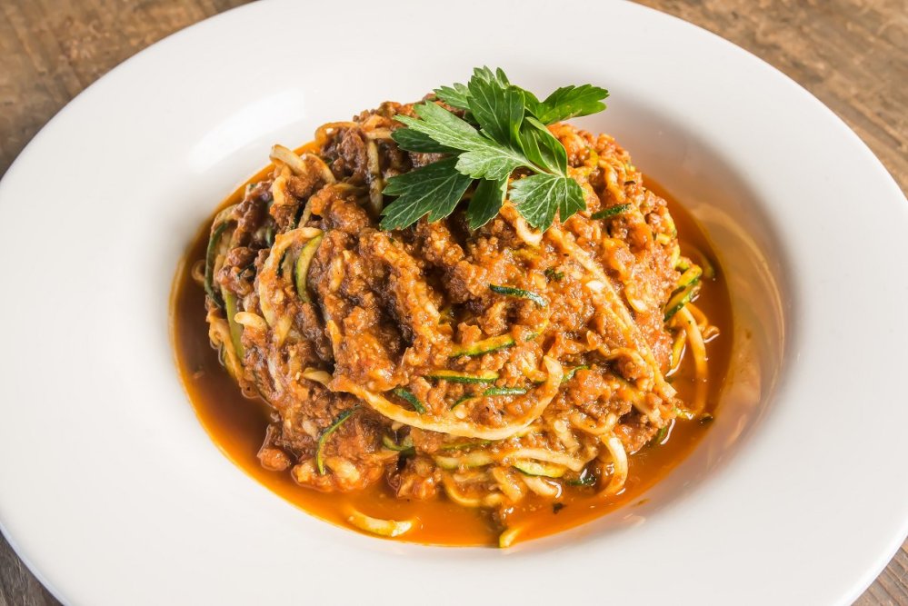 Cafe Paparazzi’s Spaghetti Bolognese with Zucchini Pasta is just like a traditional spaghetti bolognese with a healthy twist! Straight off the Clean Eats Menu, this dish cuts the carbs found in traditional spaghetti and replaces them with deliciously healthy zucchini strands. The bolognese sauce is thick and rich, with succulent mince meat and tomato sugo. Served with goats cheese, this dish is hearty and delicious.