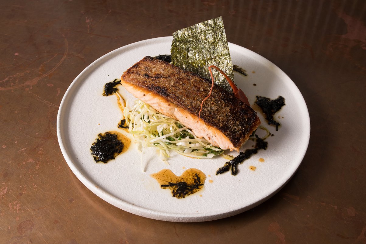Our second Large Plate was the brilliant take on the Teriyaki Salmon. With wakame mashed potato, this is a different type of mashed potato. It is a beautiful light green because it is a mixture of potato mash and seaweed! And the red cabbage was marinated with sichimi and pickled, creating this tangy and crunchy texture, my favourite kind. To top it off, they added salmon crispy skin on top of the dish. It all worked so well together on the palate.