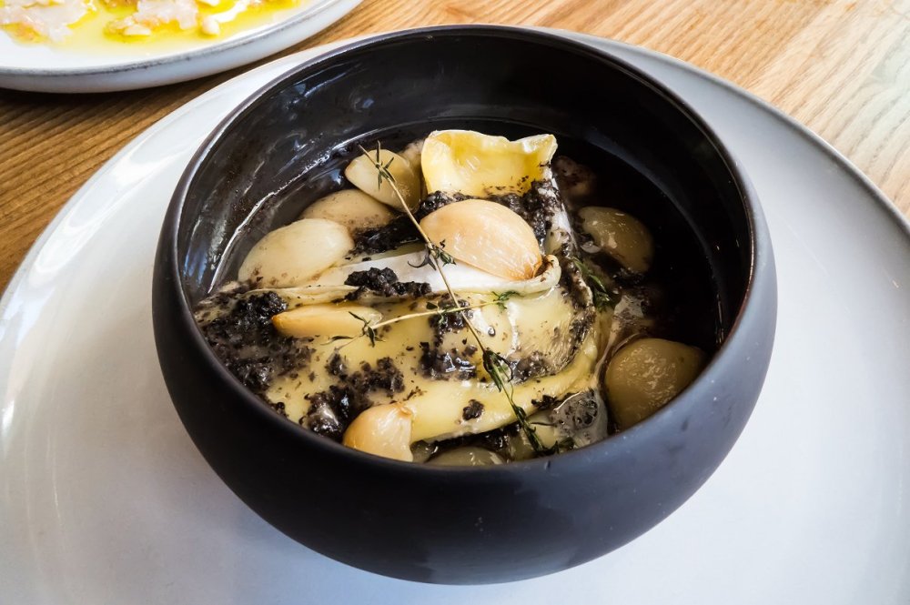 Baked Cheese is the ultimate dish to pair with wine, it’s creamy and decadent flavours pairing with rich reds in the winter and contrasting with light whites in the summer. The Baked Cheese is a creamy brie with red wine, truffle, confit garlic, thyme and chicken fat roasted potatoes. The potatoes are crispy and perfect for dipping into the cheese. Garlic and truffle give the dish beautiful flavours and strong aromas which make your mouth water.