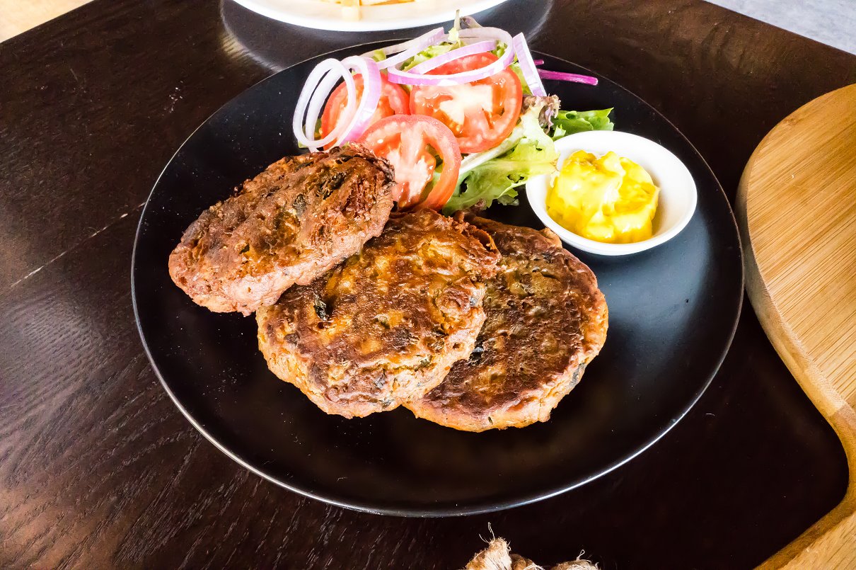 Never one to turn down an intriguing entrée, I was excited to try the vegan, vegetarian and gluten-free Fritters. The palm-sized deep-fried rissoles certainly packed a punch; an extraordinary amount of flavour created by the elaborate spice mix integrated into the spinach, corn, garden peas and Spanish onions. I’m a huge fan of turmeric – a star flavour – and so loved these! The vibrant piccalilli mayonnaise and garden salad served well to provide relief from such intense flavours… before I cut another piece!