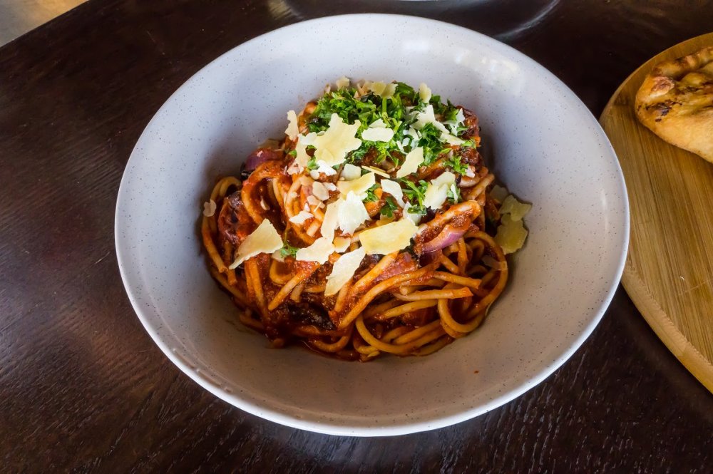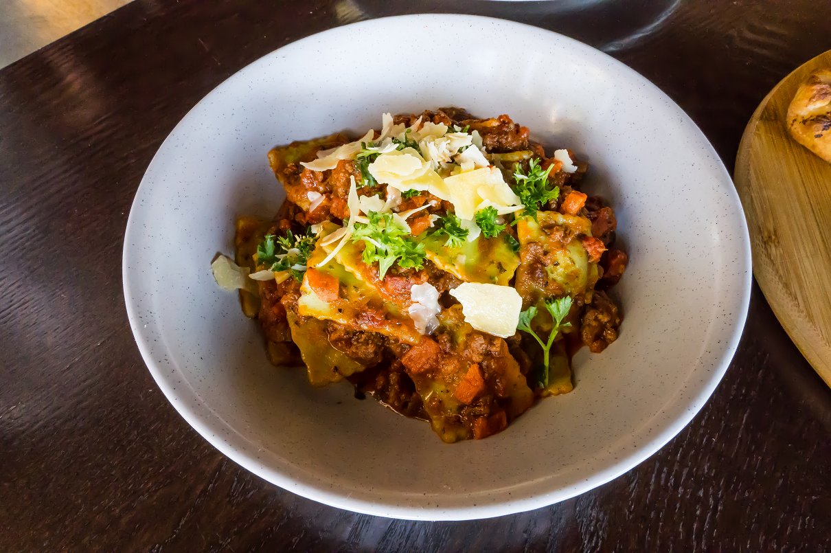 A cheeky little addition to the menu is the Calzone, available in any of the Traditional Pizzas. I adore calzones (especially the Three Little Pigs calzone from Fasta Pasta) and this one succeeded in living up to my lofty expectations. Our Super Supreme Calzone was just what you would expect… fit to burst! This particular filling option similarly features ham, mushroom the punchy pepperoni, capsicum, red onion, bacon and pineapple with a generous amount of ooey gooey cheese holding it all together. Covered with a rich Bolognese sauce and more cheese (what else?), I thought this was one of the best dishes we tried for the day.