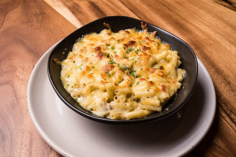 The moment this bowl of golden decadence is placed on the table, an unmistakable whiff of truffle wafts up, teasing and enticing the senses. Cheesily-topped, this mac & cheese is a rich, delectably guilty pleasure and, though presented as a side dish, would do well as a meal all on its own.