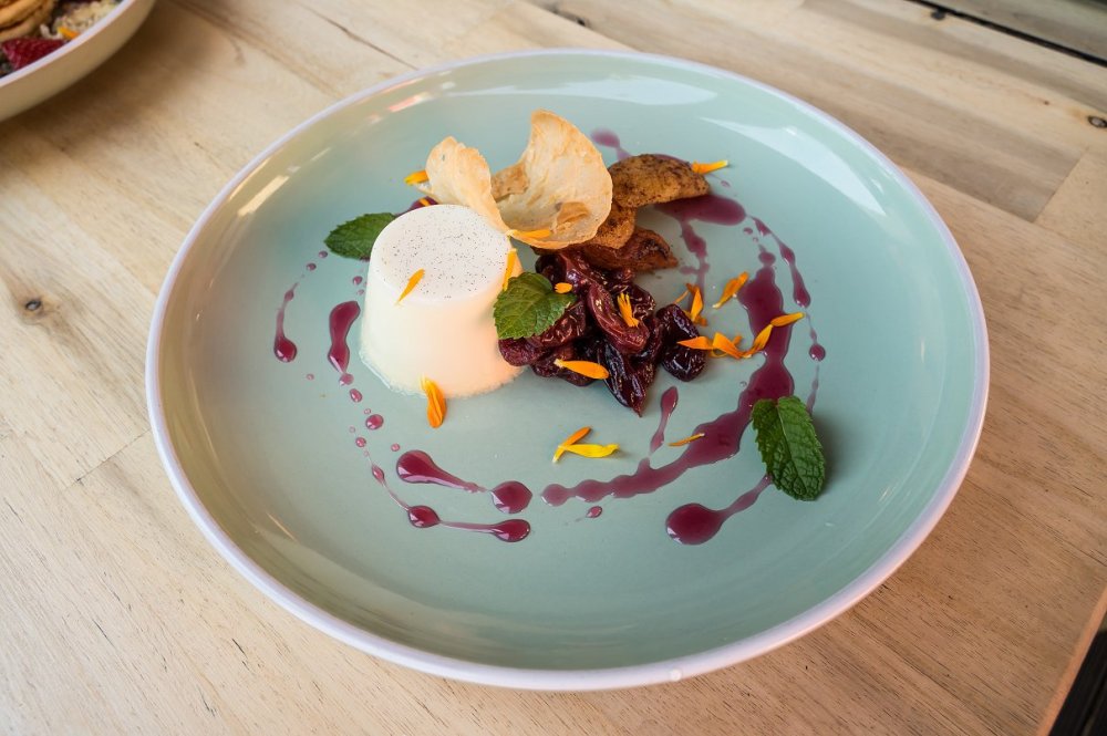 Moving on to the sweets, we adored the Vanilla Bean Pannacotta with cinnamon & vanilla roasted pear, confit red grapes, orange tuile, grape coulis and fresh mint. All the flavours are light and fresh with beautifully sweet undertones. The pannacotta has a perfect, light and silky texture. Its creaminess mingles beautifully with the vibrant sweetness of the grape coulis and freshness of the mint. The cinnamon & vanilla roasted pear reminds you of a traditional apple pie and the confit red grapes bring a rich sweetness to this pairing.