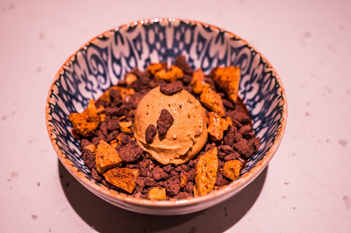 For dessert we were served Chocolate Wattleseed Negroni Mousse with honeycomb ice cream. This dish was flavour central! The negroni mousse was unlike anything I’d ever had. It was rich, sticky and indulgent, but with a tartness to it from the negroni. The strong flavour was balanced by the honeycomb crunch and the natural chocolate-coffee taste of the wattleseed. Possibly my dish of the night!