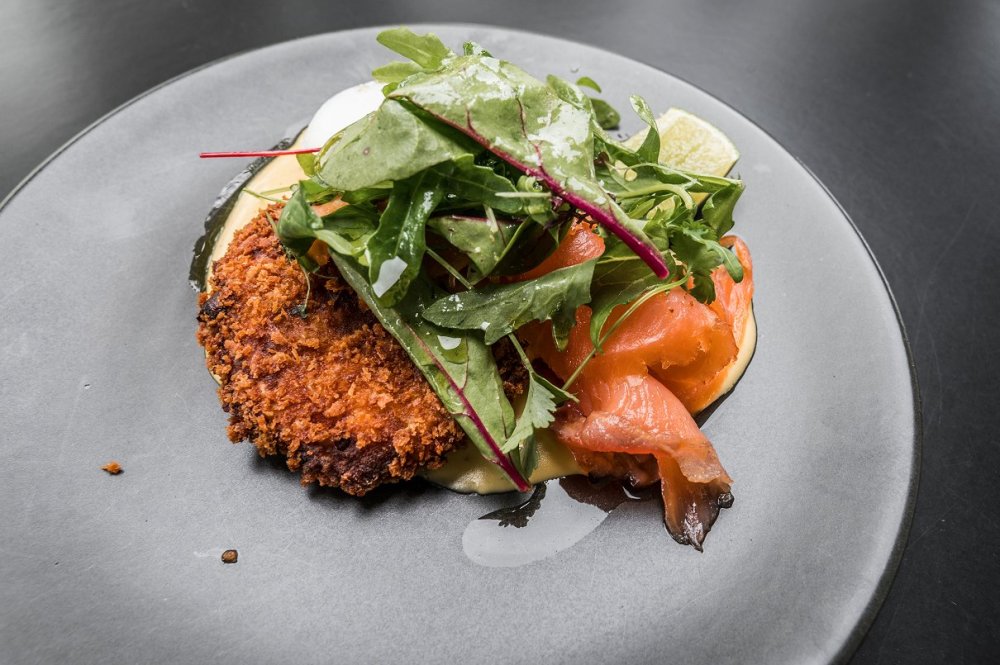 Served as salmon two ways, the panko-crusted fish cake – with flakes of coral toned salmon and flecks of chive – is accompanied by ribbons of smoked salmon, and goldenly runny poached eggs, floating in a serene pool of Hollandaise. This is a delightfully unique, highly enjoyable piece that has proved a popular choice among restaurant goers. A must try.
