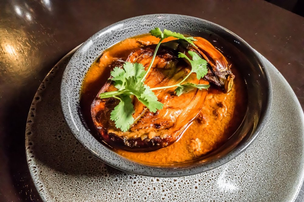 Showcasing an array of appetisers and side dishes, there is something for everyone here – including eggplant, presented three ways. While the creaminess of the vegetable is evident through each, their flavour profiles differ dramatically, resulting in three distinct offerings: smoky, sweet and fierily warm.