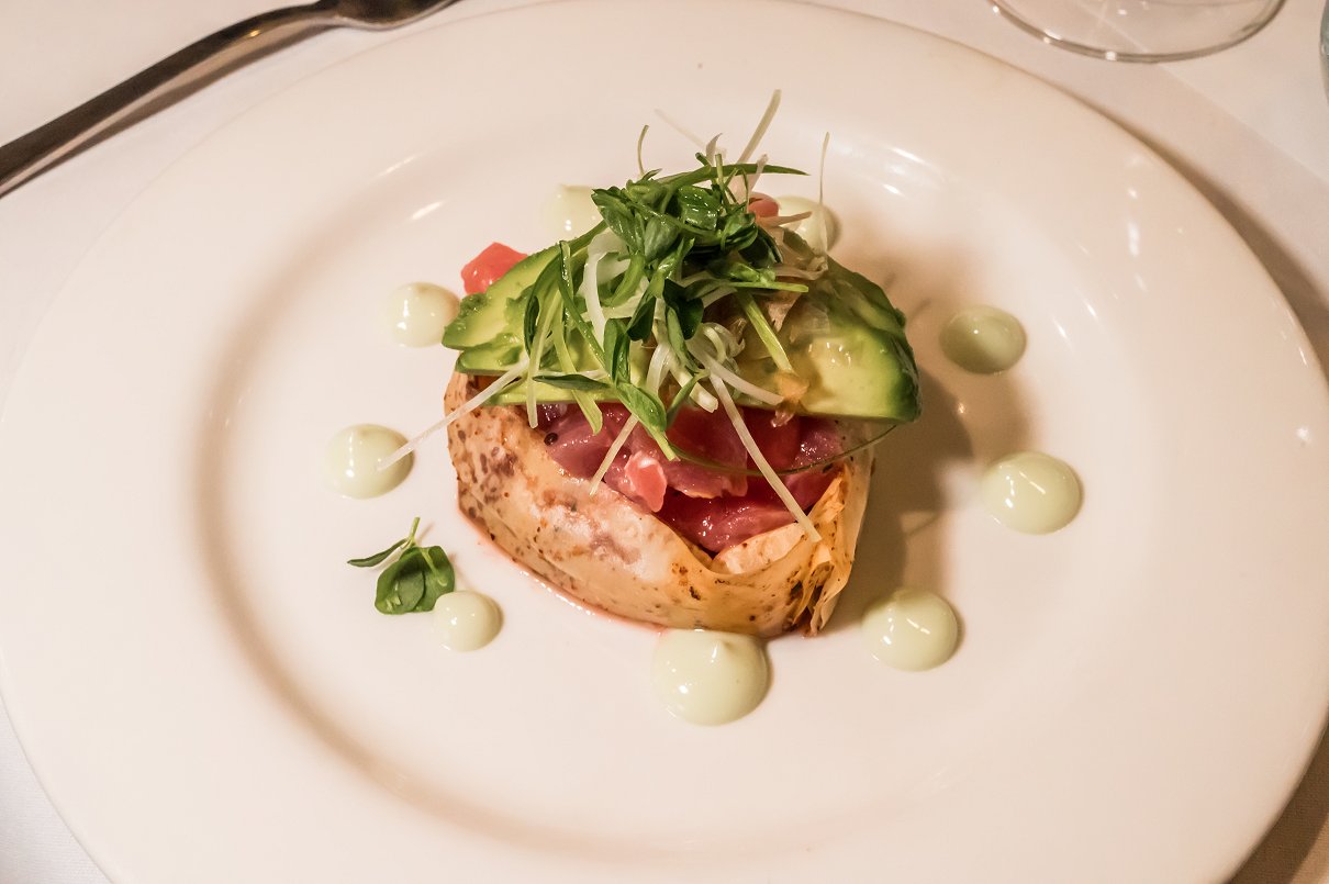 We were then greeted with South Australian Blue Fin Tuna in a Cheesy Filo Ring with Wasabi Aioli. The tuna was salty and balanced by the sharpness of the wasabi aioli. The filo ring added a nice textural element to the dish. This was paired with the Gemtree ‘Luna de Fresa’ Rose which had aromas of rose water, cherry and strawberry, and with similar characteristics with the addition of lychee on the palate.