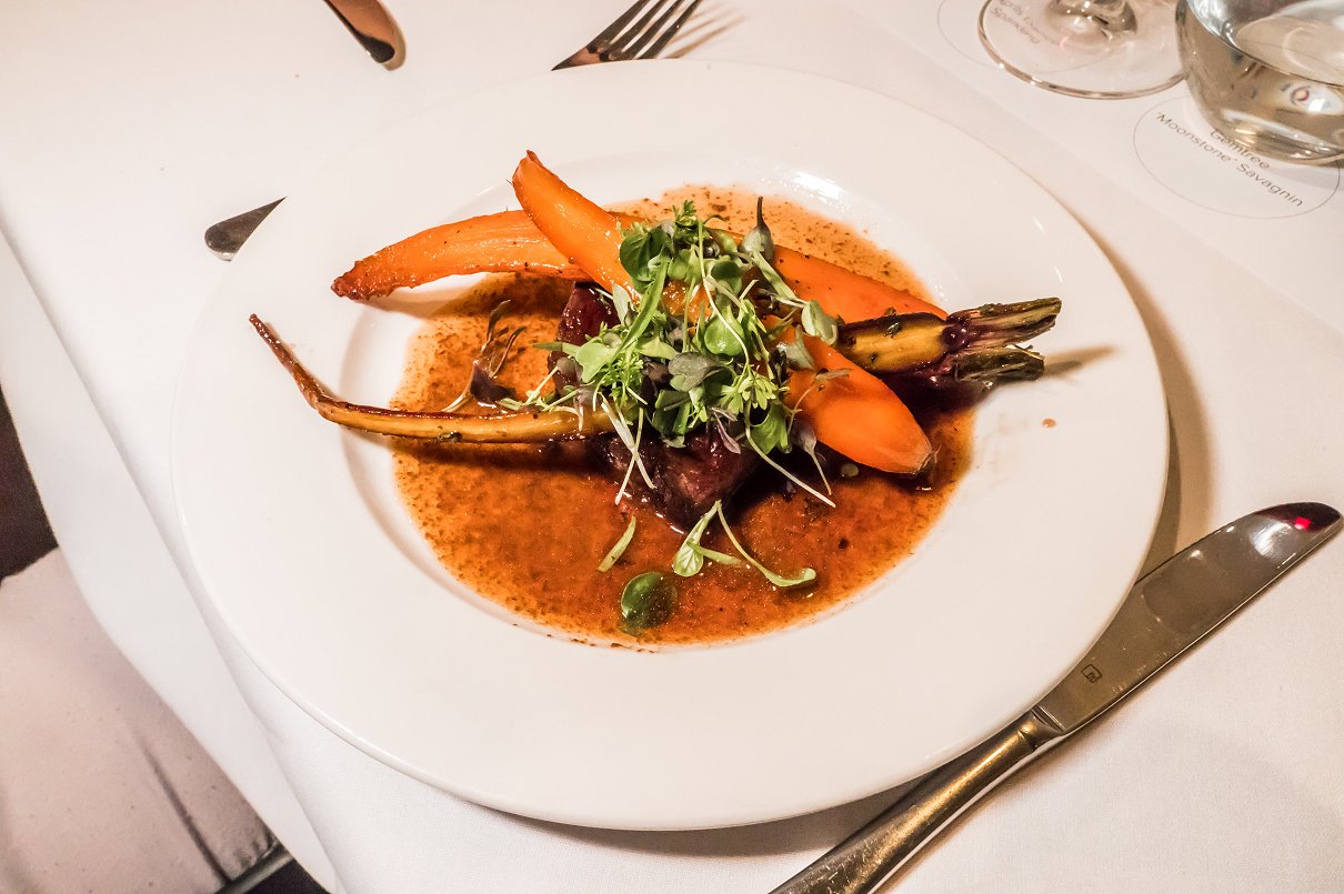 Next was the Morton Bay Bugs served with Courgette Risotto and White Wine Lemon Butter. The Morton Bay Bugs were slightly smoky and cooked just right. They were perfect with the firm but creamy risotto. The white wine lemon butter added a lovely citrus component to the dish. This was matched with the Gemtree ‘Moonstone’ Savagnin which had distinct aromas of limes and white peaches, while on the palate, it was almost like a riesling.