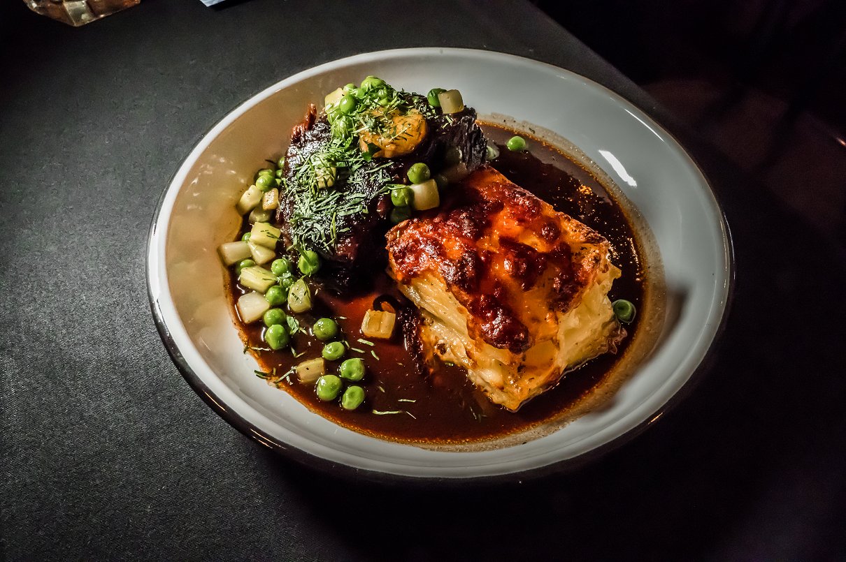 A smattering of vibrantly green peas contrasted the otherwise dark, earthy tones of the plate, and provided pops of sweetness to counter the savouriness of the meat.