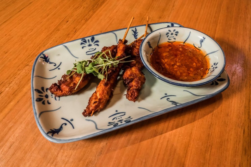We always like to start a meal with delicious chicken satay skewers. Thin strands of well seasoned, crispy chicken were perfectly cooked on the skewer. The starter is then topped off with a deliciously mild peanut sauce.