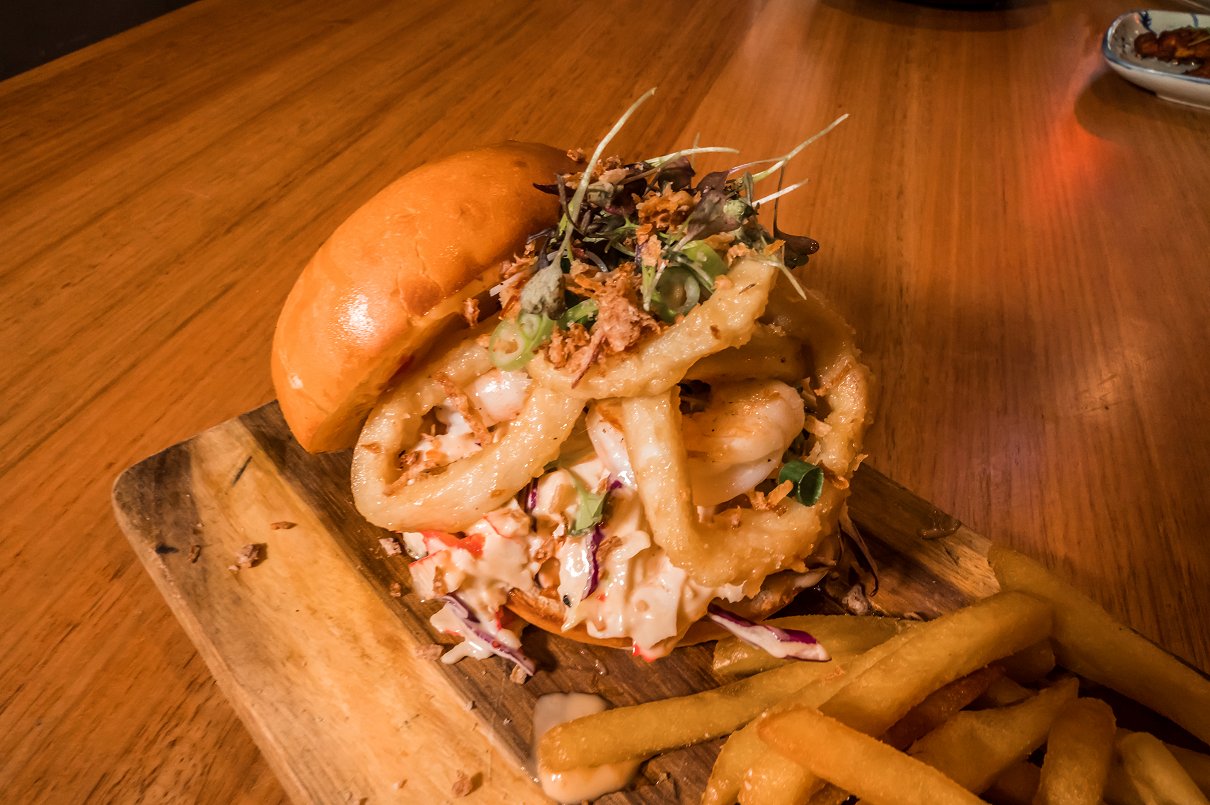 This is the very definition of a seafood burger! The lightly grilled prawns and slightly battered squid rings were perfectly cooked, as was the soft and delicate crab meat mix. The Thai slaw was crunchy with loads of dressing, and really did well to combine all the elements together.