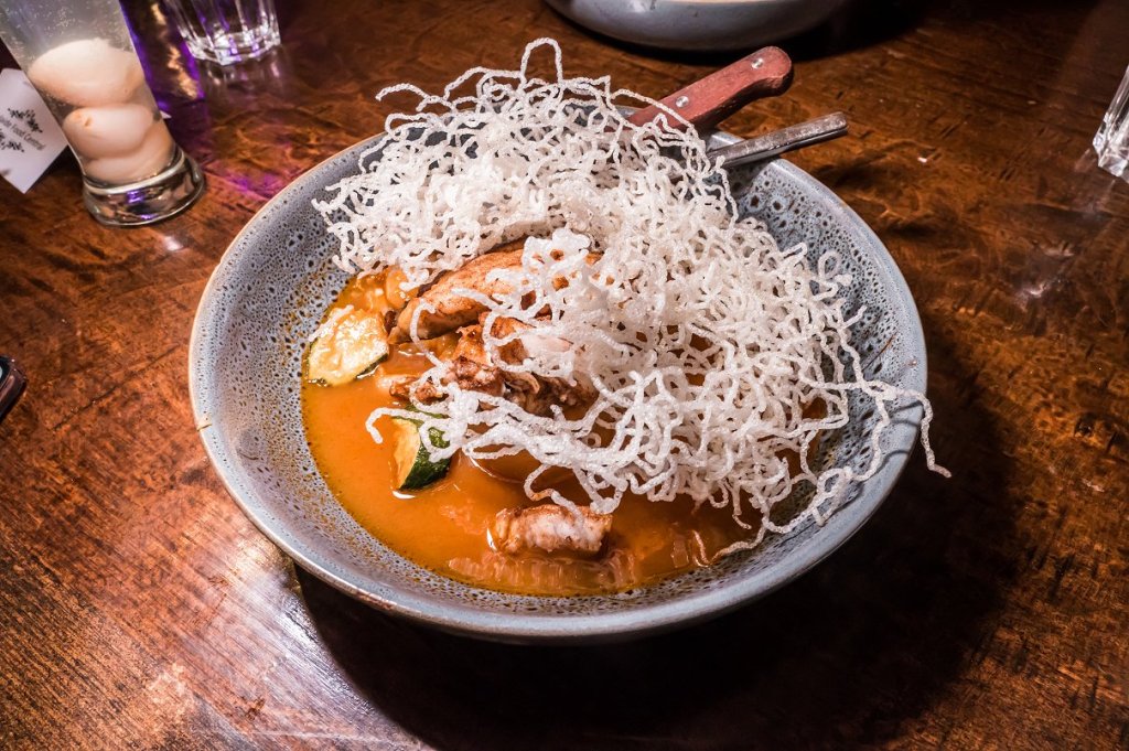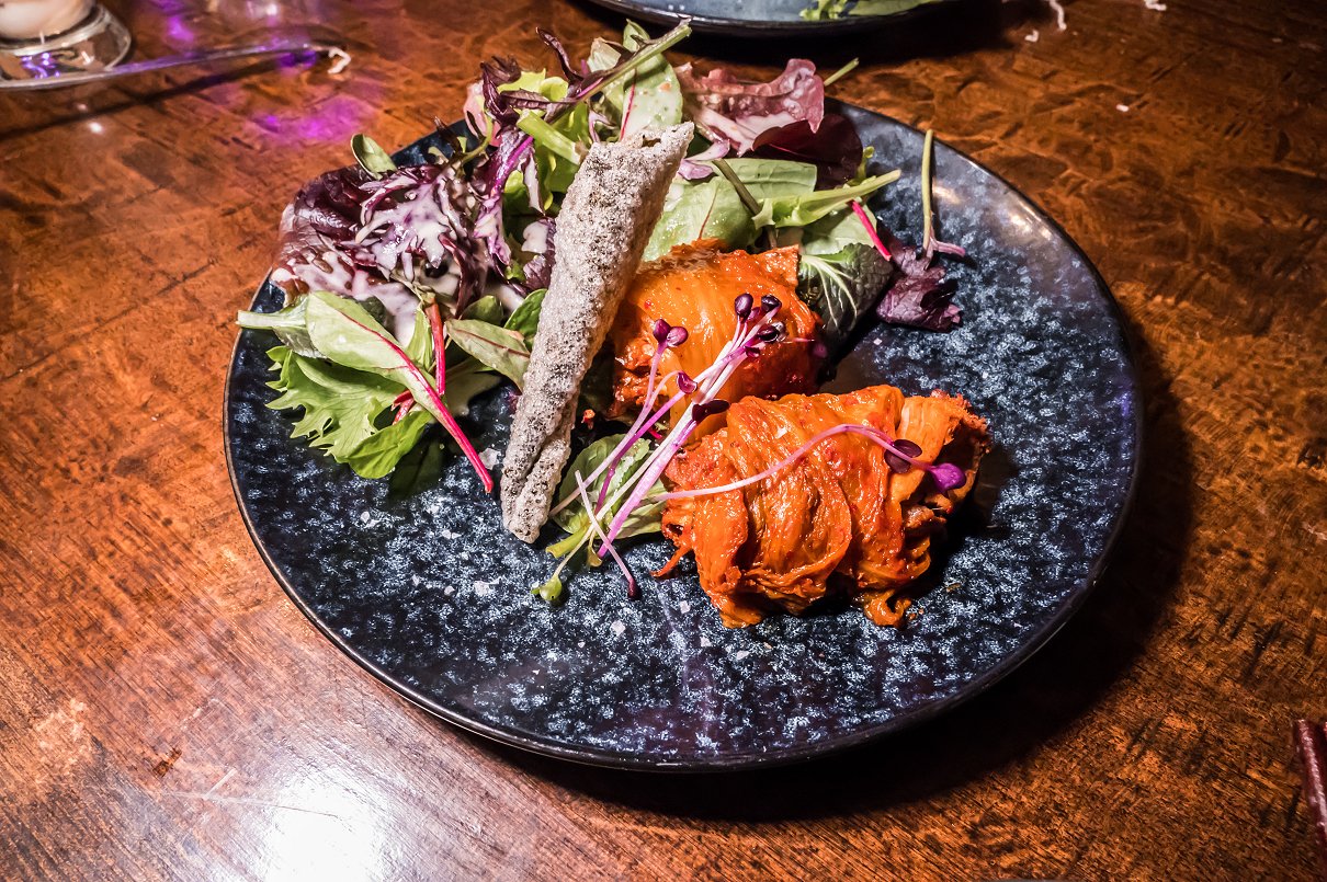One for the kimchi lovers, this unique offering was a highlight of the night. A juicy chunk of pork was wrapped in sweet, chilli-red dyed cabbage leaves – an essential of Korean cuisine. This glorious parcel, with its intricate balance of salinity, spice, sweetness and savouriness, proved the perfect mouthful.
