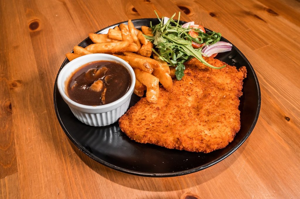 This crispy free range chicken schnitzel parmy, is served with chips, salad and a chunky mushroom gravy. The chicken was perfectly battered leaving a crunch. I was super excited to try their take on the pub classic, and I enjoyed every part of it.