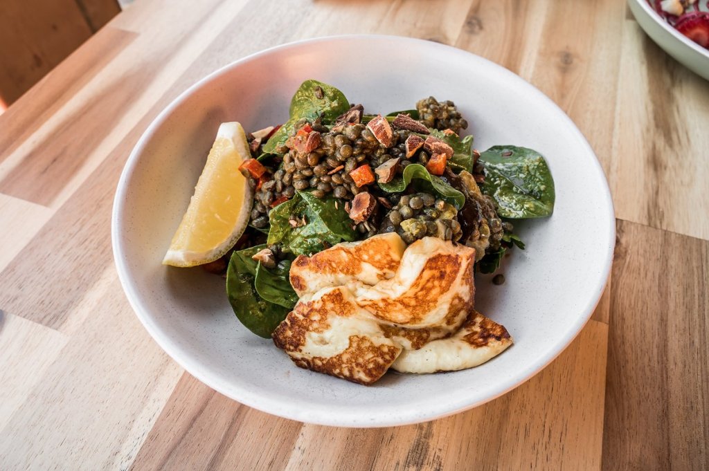 Vegetarians rejoice! Livin’ on Veg has been made for you! The salad consists of a whole medley of healthy ingredients including roasted eggplant and lentils, roasted almonds, spinach, parsley, coriander, tomatoes, green tahini, pomegranate molasses, red capsicum and balsamic vinegar. This was not only healthy but delicious.
