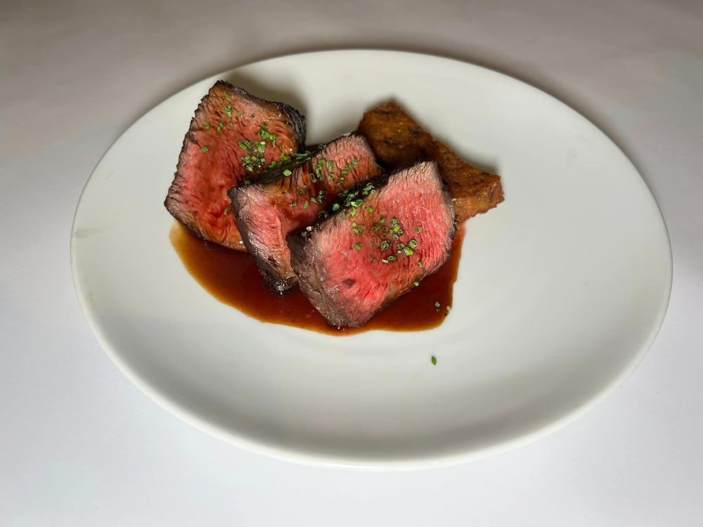 We were then greeted with Crispy Skin Port Lincoln Kingfish served with barbecued zucchini and sweet and sour fennel. The kingfish fillet was perfectly cooked. The flesh was soft and tender, while the skin was crisp like a potato chip. The zucchini and fennel were great co-stars to the hero of the dish. This was matched with 2021 The Lane Chardonnay. The wine was fresh, vibrant and textural. A contemporary cool-climate Chardonnay displaying orange blossom, grapefruit and green apple with a crunchy and flinty finish.
