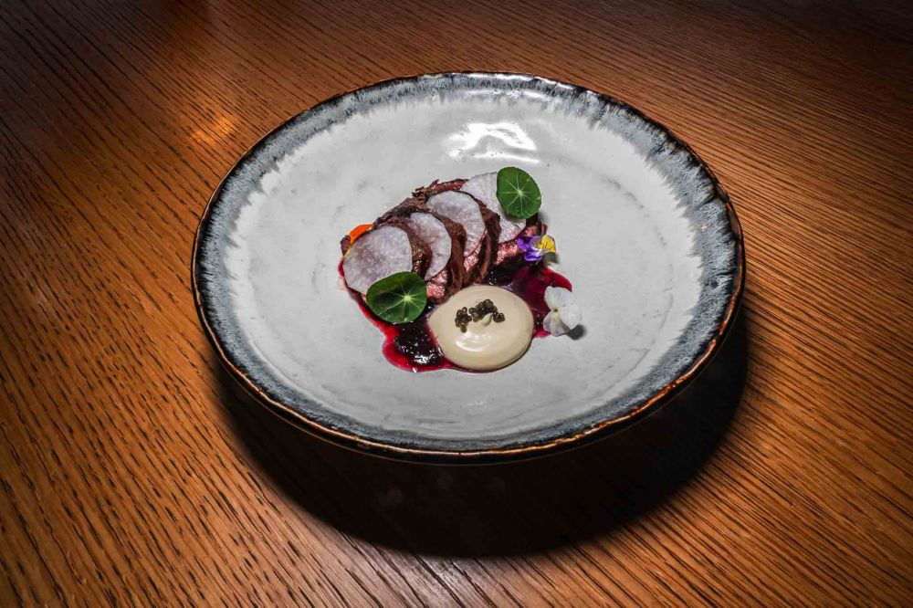 A standout dish that showcased native Australian ingredients with finesse. Lightly seared kangaroo was tender and clean in flavour, complemented by pepper berry and beetroot relish. Davidson plum gel brought a subtle tartness, while crème fraîche softened the edges. Pickled radish added crunch, and sail caviar finished the dish with a refined briny pop.