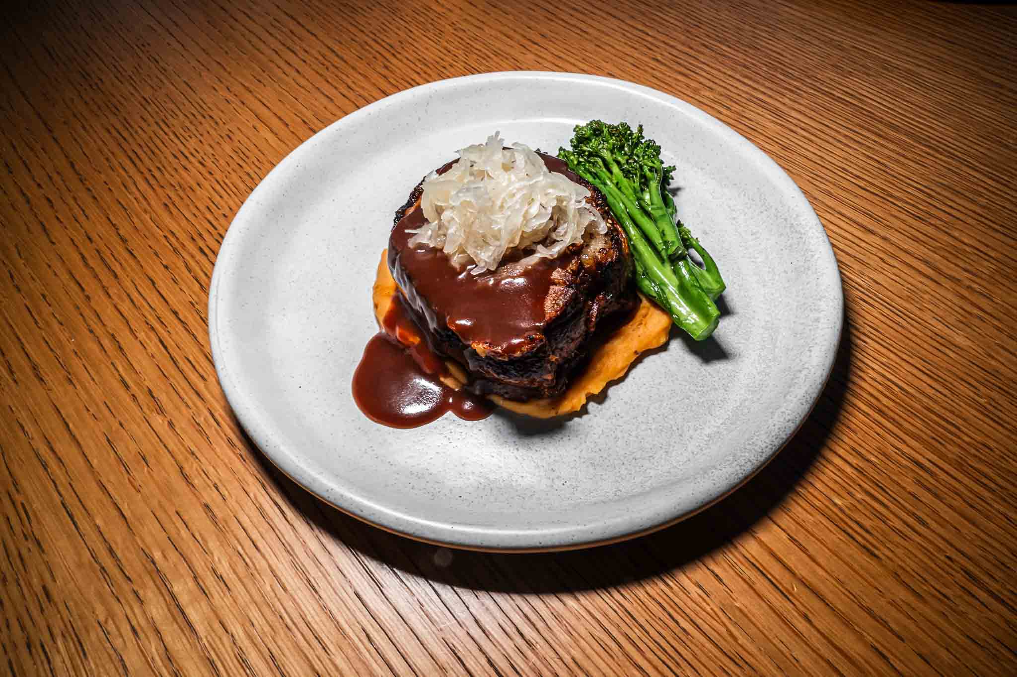 Succulent, slow-cooked pork porchetta arrived with crackling that delivered on texture and flavour. The bush spice sweet potato mash added warmth and earthiness, broccolini brought freshness, and sauerkraut cut through the richness. Finished with quince jus, this dish was comforting yet elevated.