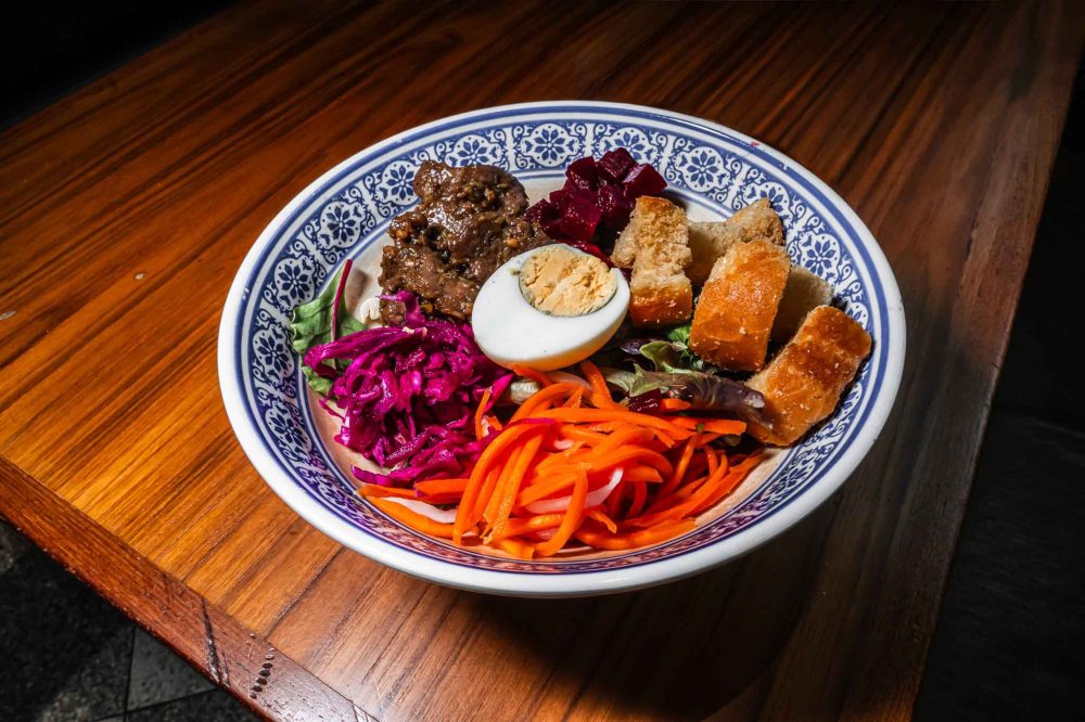 If you’re after protein and punchier flavours, the Nom Bo salad combines Angus beef fillet with mixed greens, beetroot, boiled egg and croutons, all dressed in a vibrant nuoc cham dressing — a dish that feels both hearty and refreshing.